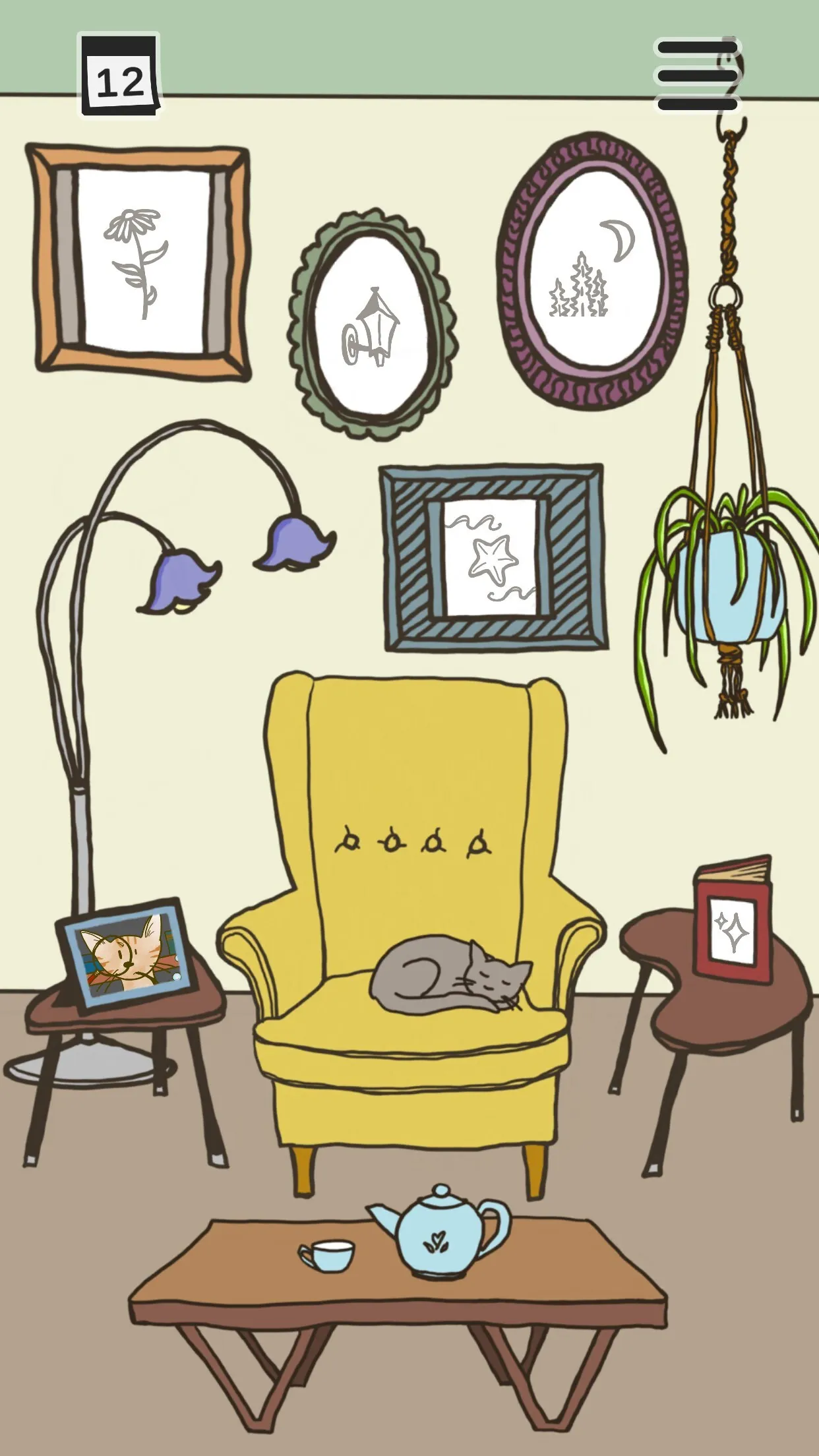 - Hand-drawn illustrations: Unlock new cat scenes to uncover each cat’s favorite activity.